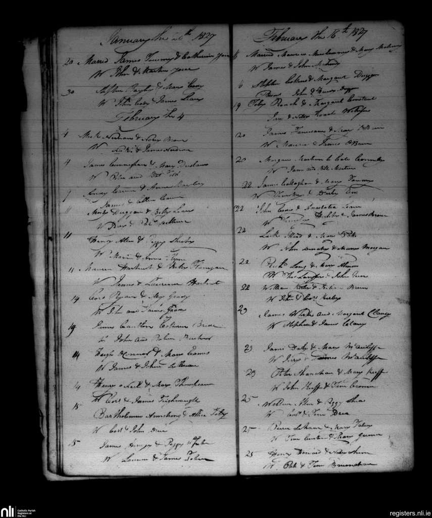 Newmarket; County of Cork; Diocese of Cloyne. Marriages, Jan. 1827 to Feb. 1827