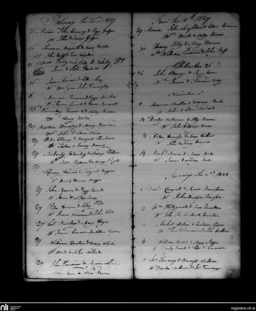 Newmarket; County of Cork; Diocese of Cloyne. Marriages, Feb. 1827 to Jan. 1828