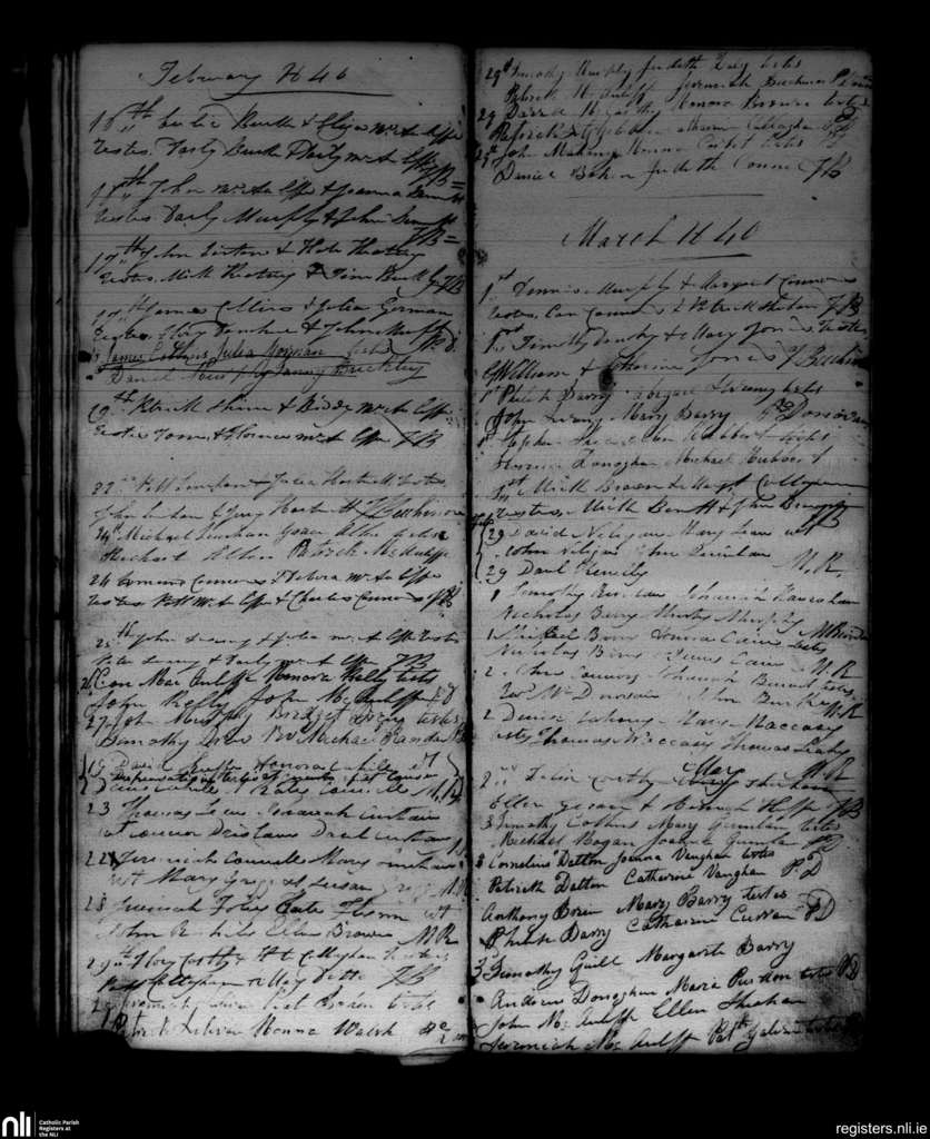 Newmarket; County of Cork; Diocese of Cloyne. Marriages, Feb. 1840 to Mar. 1840