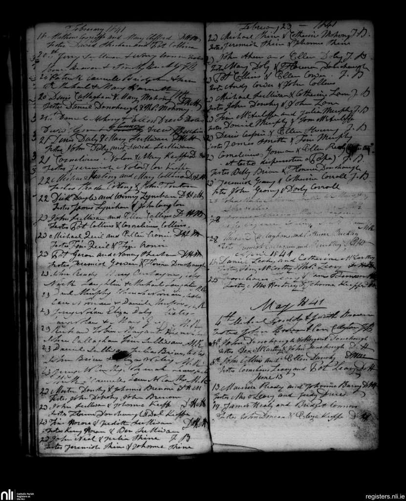 Newmarket; County of Cork; Diocese of Cloyne. Marriages, Feb. 1841 to June 1841