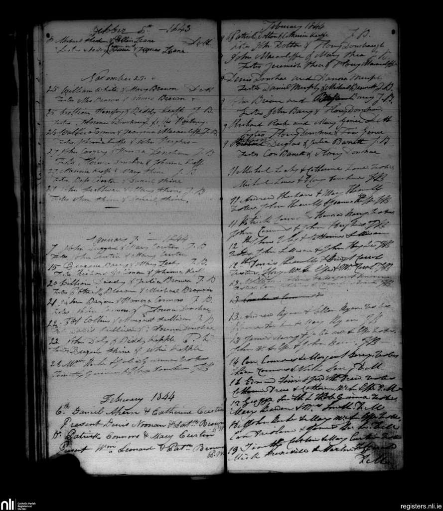Newmarket; County of Cork; Diocese of Cloyne. Marriages, Oct. 1843 to Feb. 1844