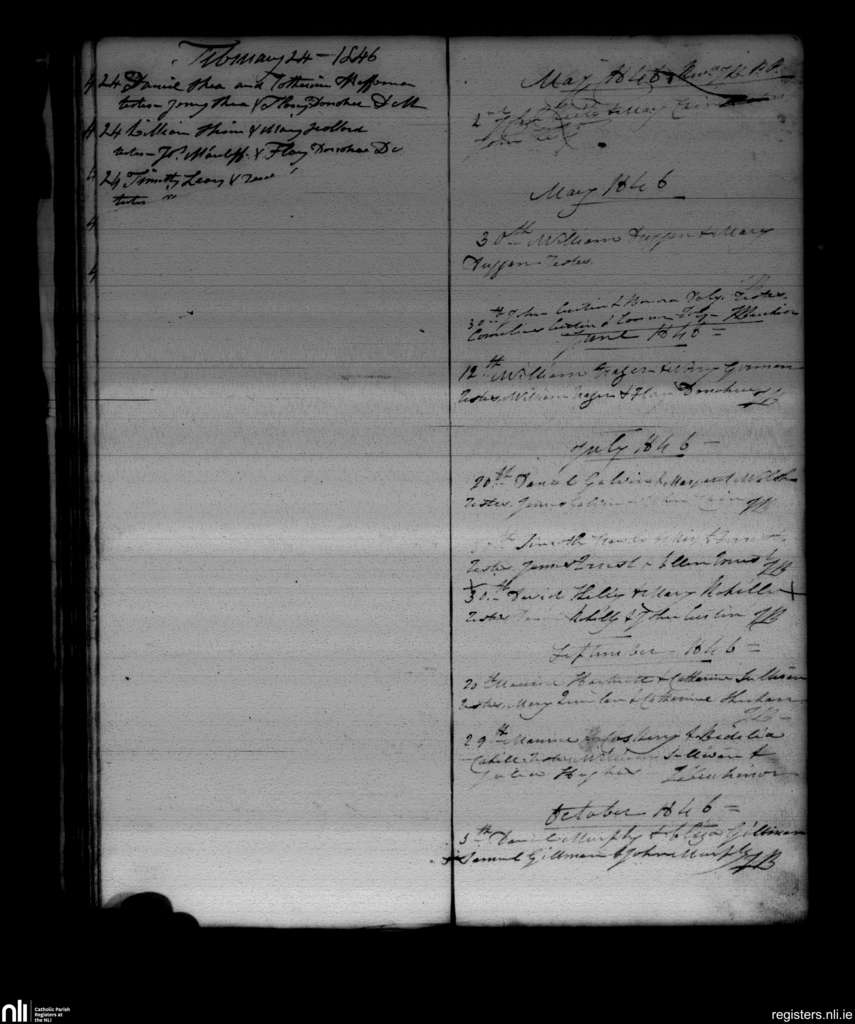 Newmarket; County of Cork; Diocese of Cloyne. Marriages, Feb. 1846 to Oct. 1846