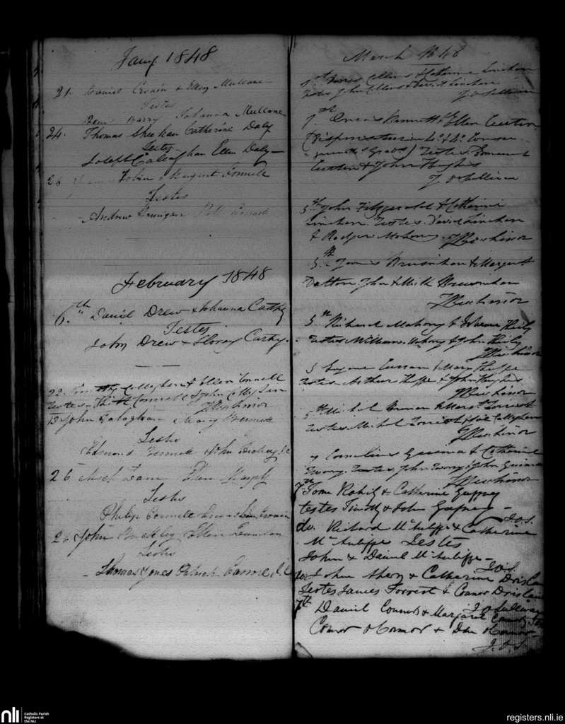 Newmarket; County of Cork; Diocese of Cloyne. Marriages, Jan. 1848 to Mar. 1848
