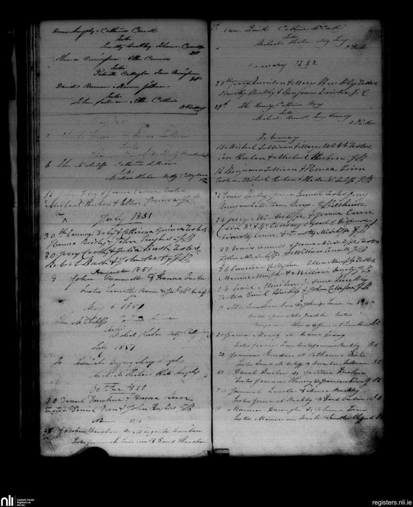 Newmarket; County of Cork; Diocese of Cloyne. Marriages, Feb. 1851 to Feb. 1852