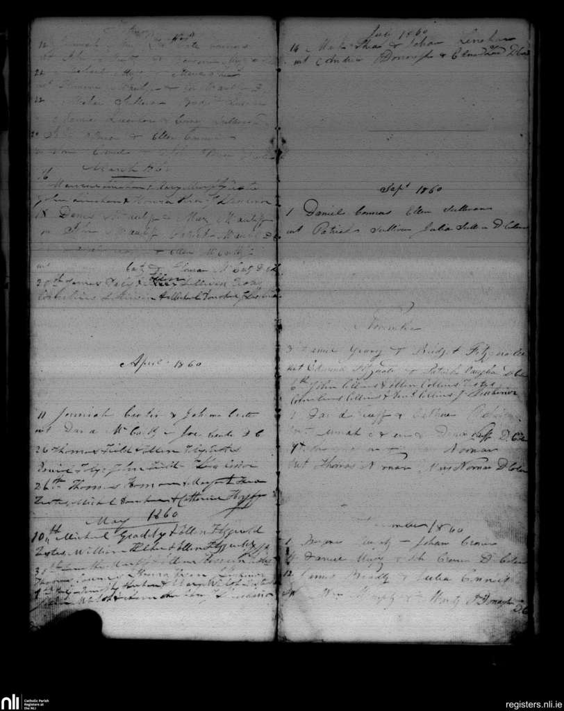 Newmarket; County of Cork; Diocese of Cloyne. Marriages, Feb. 1860 to Dec. 1860