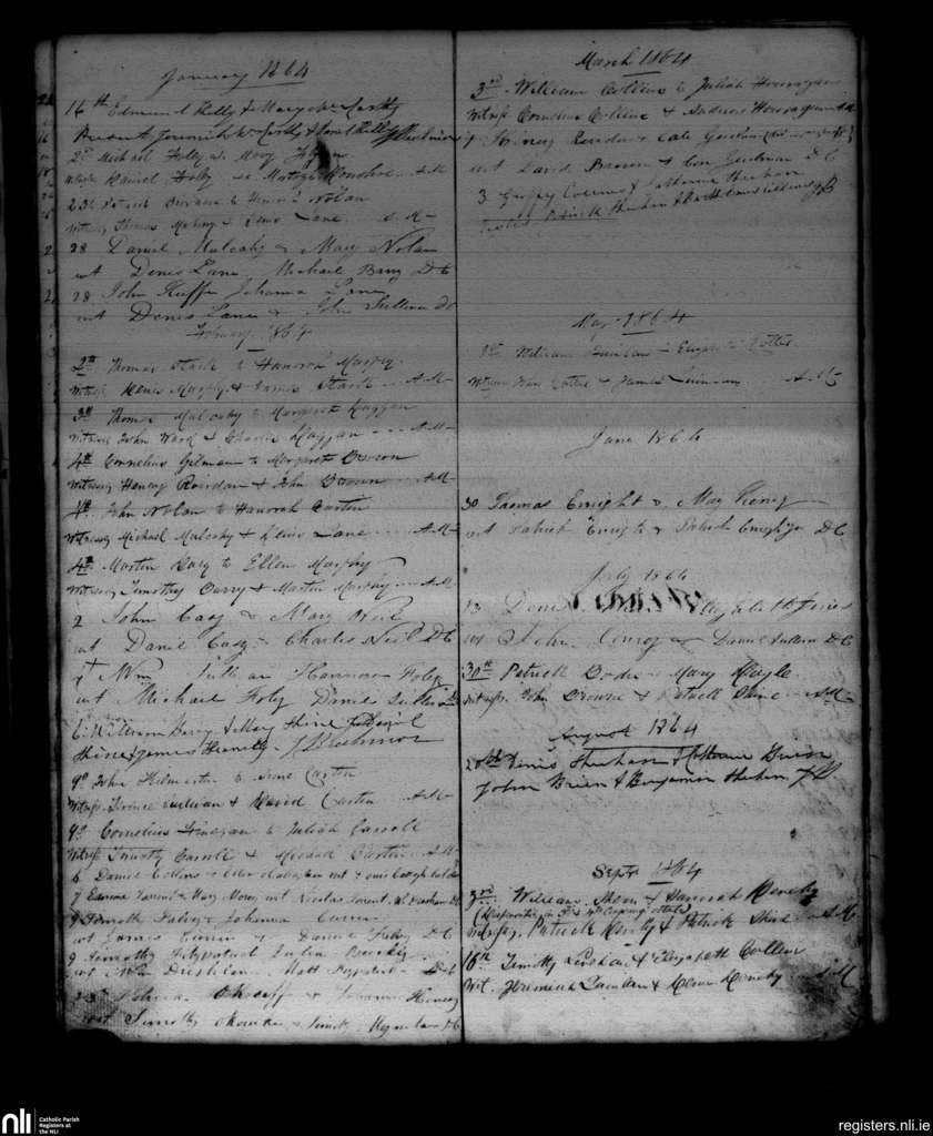 Newmarket; County of Cork; Diocese of Cloyne. Marriages, Jan. 1864 to Sep. 1864