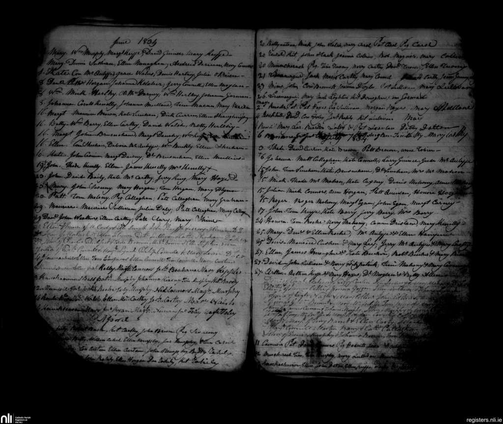 Newmarket; County of Cork; Diocese of Cloyne. Baptisms, June 1834 to July 1834