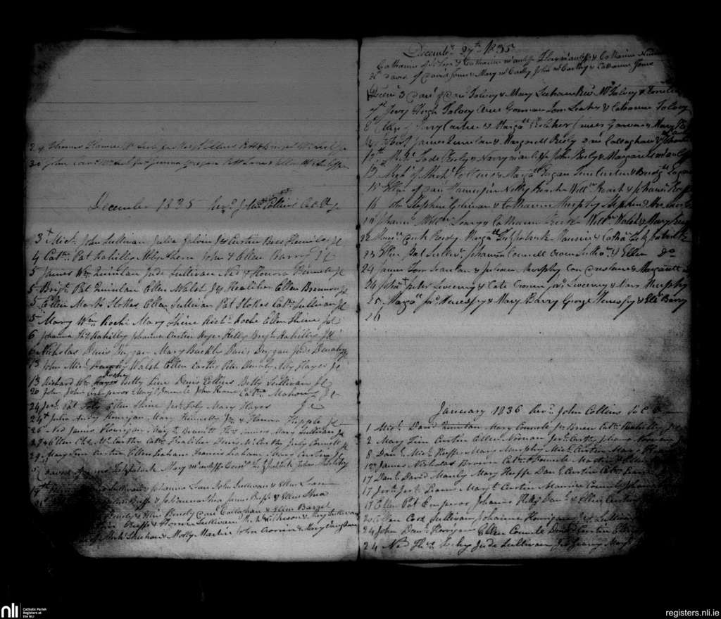 Newmarket; County of Cork; Diocese of Cloyne. Baptisms, Nov. 1835 to Jan. 1836