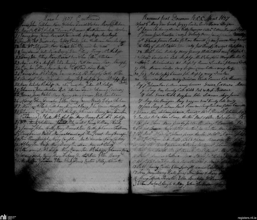 Newmarket; County of Cork; Diocese of Cloyne. Baptisms, Mar. 1837 to Apr. 1837