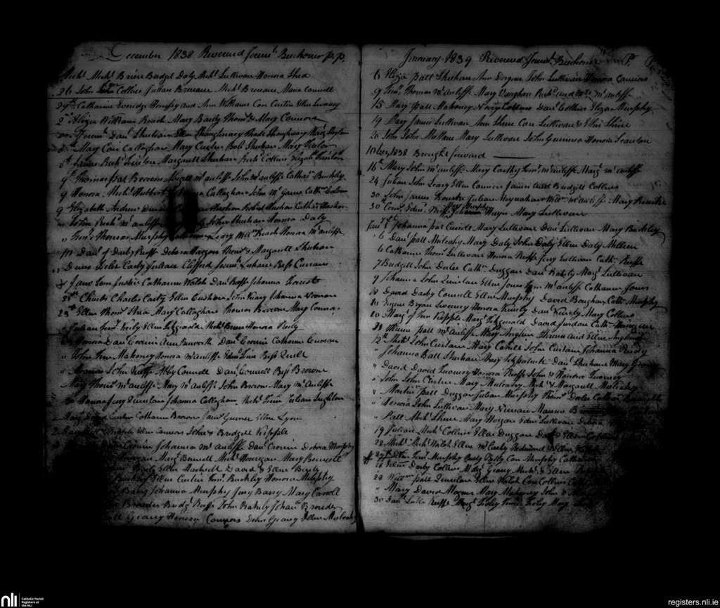 Newmarket; County of Cork; Diocese of Cloyne. Baptisms, Dec. 1838 to Jan. 1839
