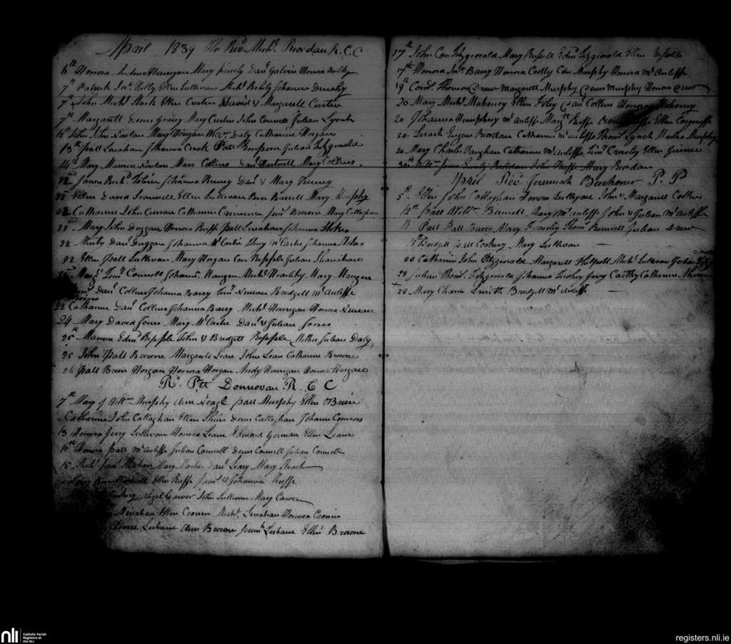 Newmarket; County of Cork; Diocese of Cloyne. Baptisms, Apr. 1839