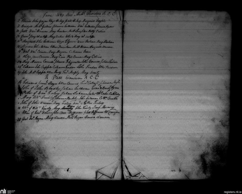 Newmarket; County of Cork; Diocese of Cloyne. Baptisms, June 1839