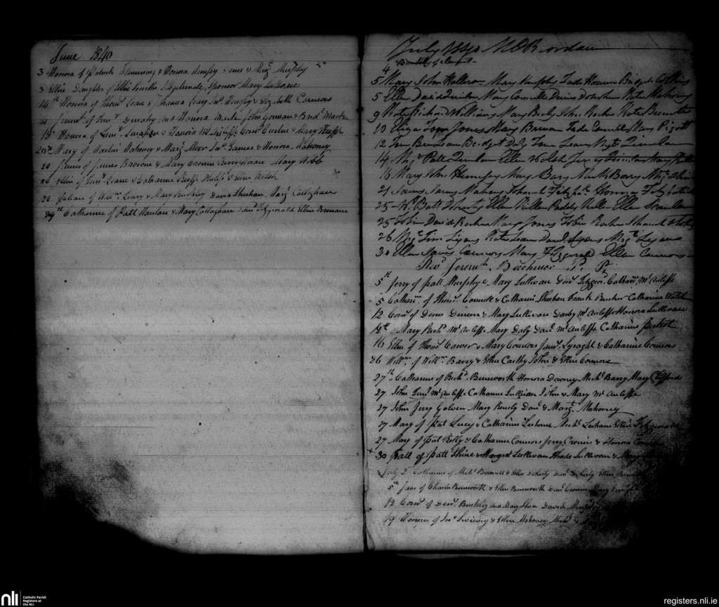 Newmarket; County of Cork; Diocese of Cloyne. Baptisms, June 1840 to July 1840
