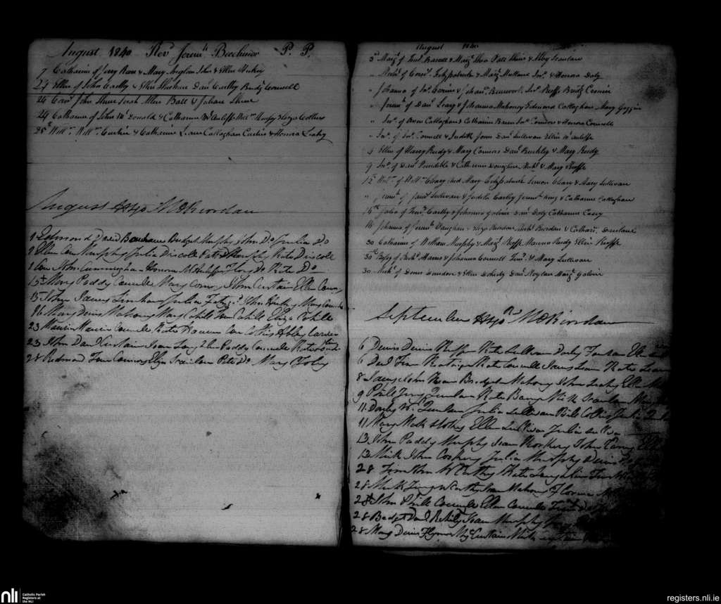 Newmarket; County of Cork; Diocese of Cloyne. Baptisms, Aug. 1840 to Sep. 1840