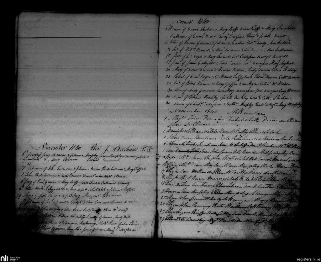 Newmarket; County of Cork; Diocese of Cloyne. Baptisms, Nov. 1840