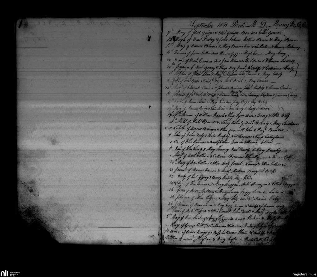 Newmarket; County of Cork; Diocese of Cloyne. Baptisms, Sep. 1841