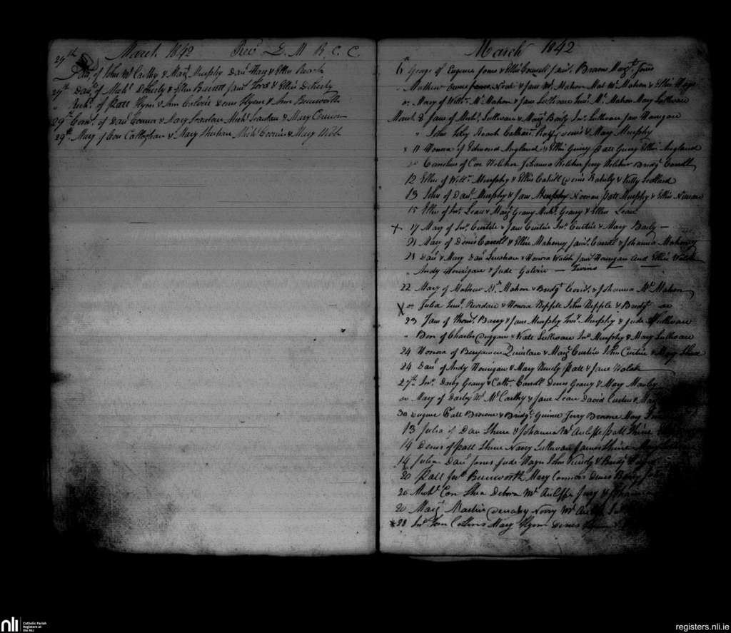 Newmarket; County of Cork; Diocese of Cloyne. Baptisms, Mar. 1842