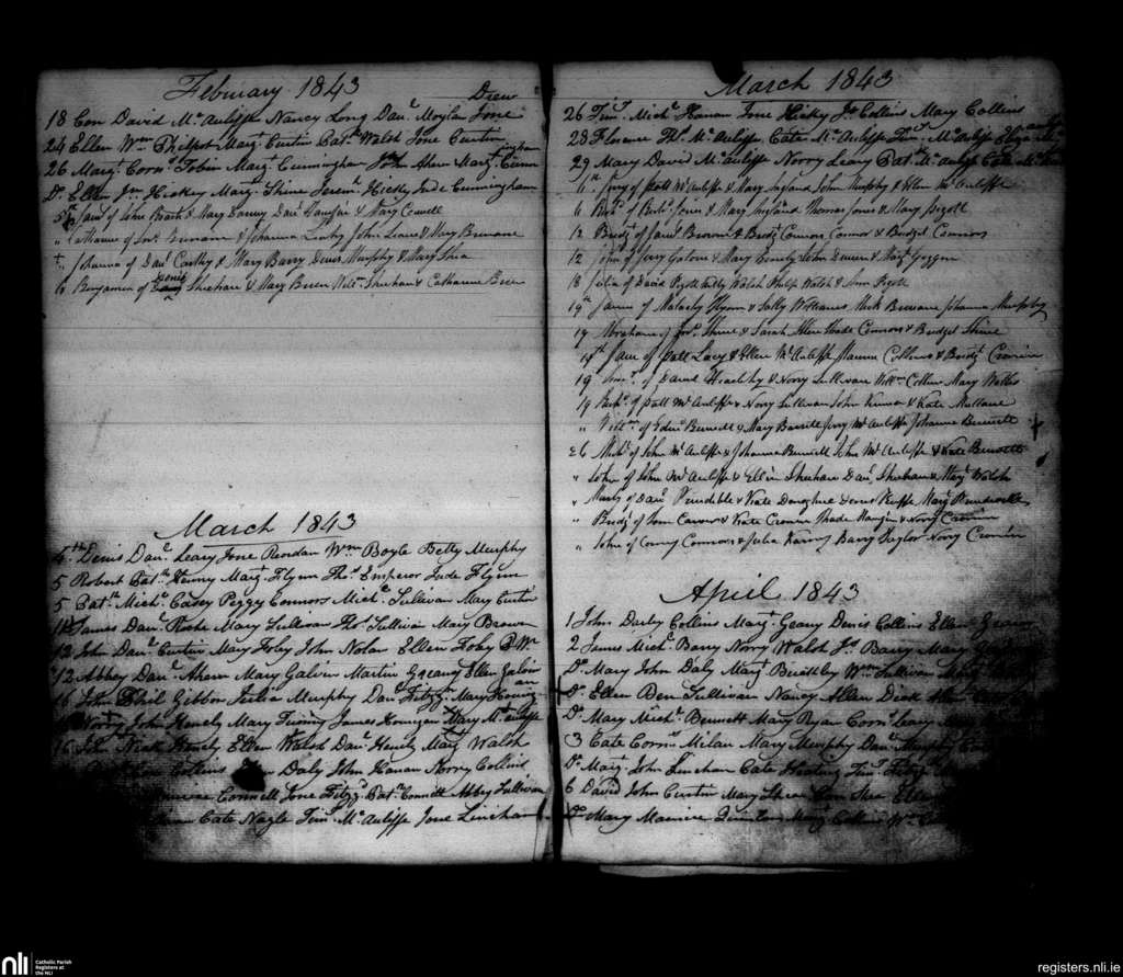 Newmarket; County of Cork; Diocese of Cloyne. Baptisms, Feb. 1843 to Apr. 1843