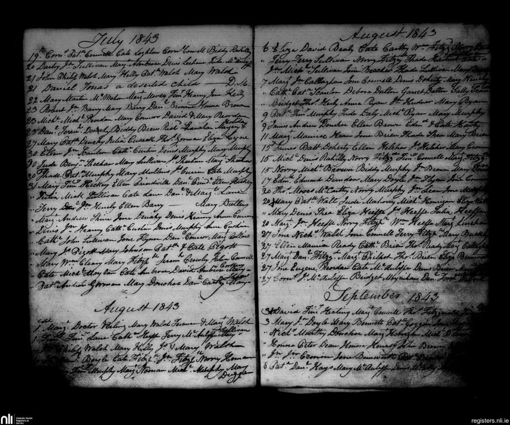 Newmarket; County of Cork; Diocese of Cloyne. Baptisms, July 1843 to Sep. 1843