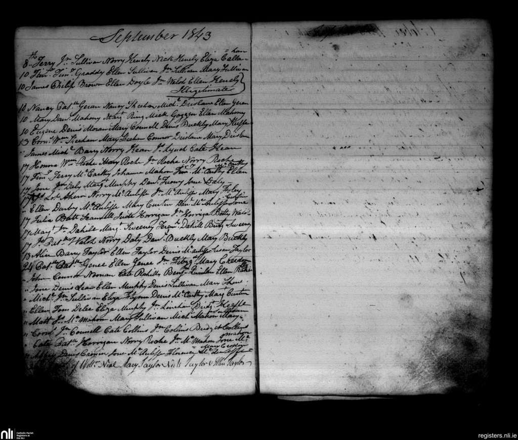 Newmarket; County of Cork; Diocese of Cloyne. Baptisms, Sep. 1843