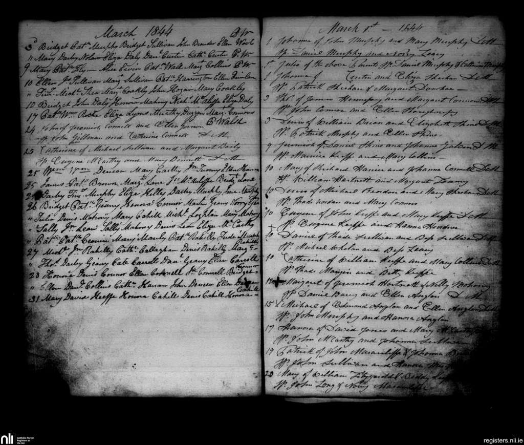 Newmarket; County of Cork; Diocese of Cloyne. Baptisms, Mar. 1844
