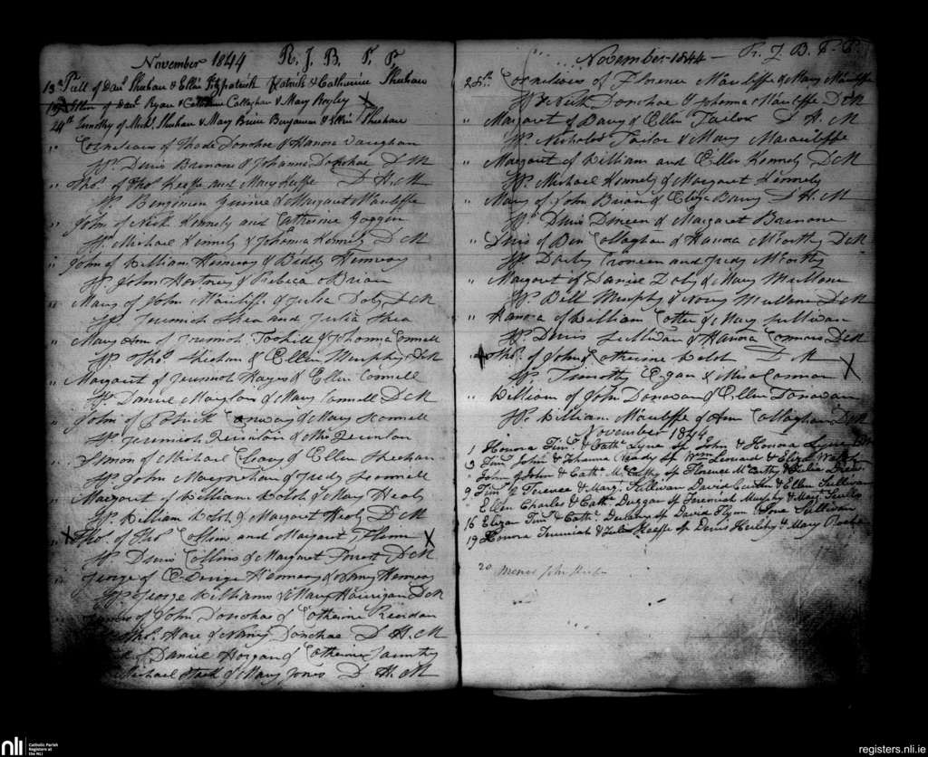 Newmarket; County of Cork; Diocese of Cloyne. Baptisms, Nov. 1844