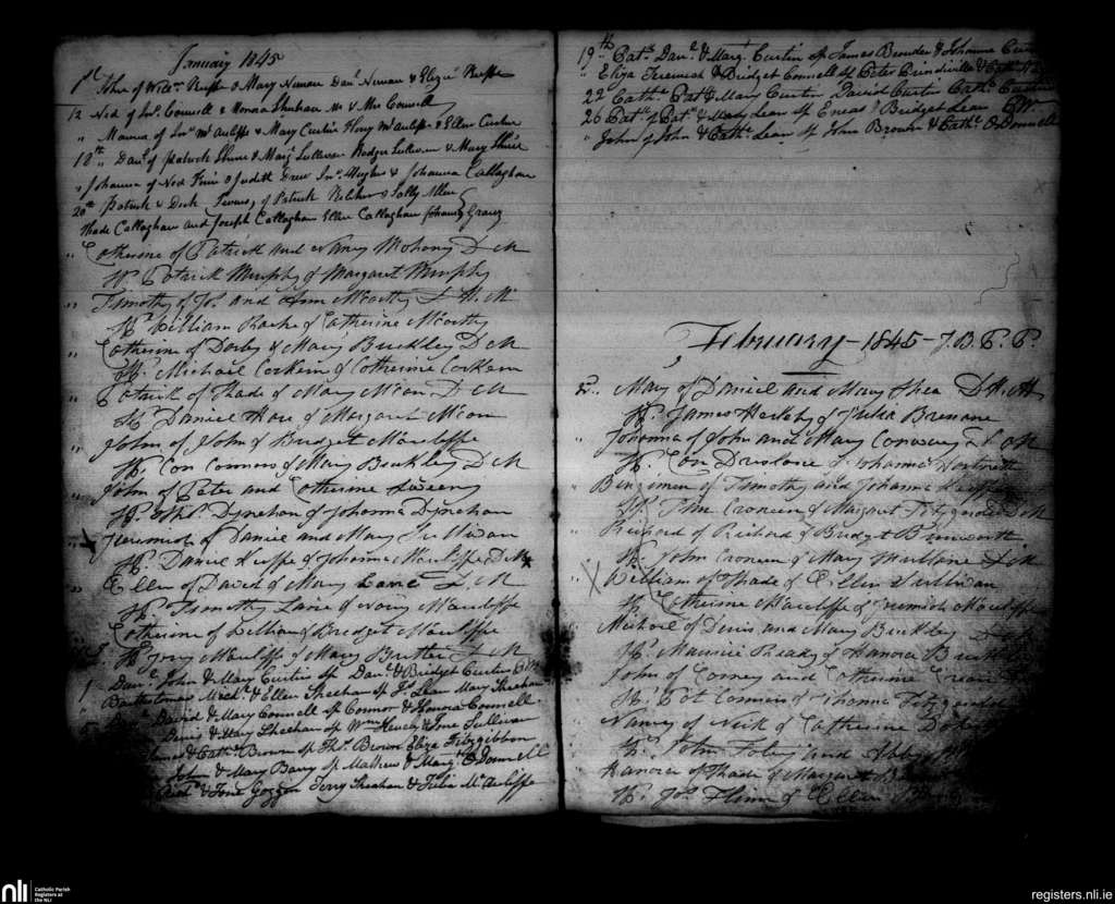 Newmarket; County of Cork; Diocese of Cloyne. Baptisms, Jan. 1845 to Feb. 1845