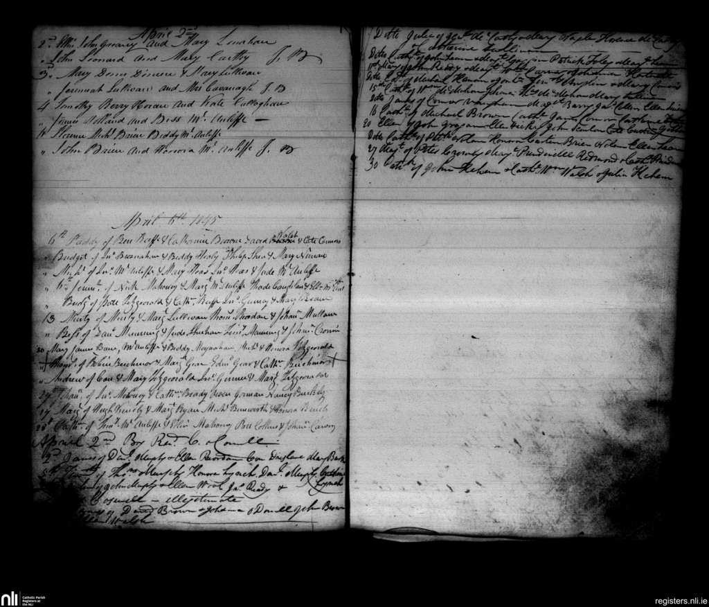 Newmarket; County of Cork; Diocese of Cloyne. Baptisms, Apr. 1845