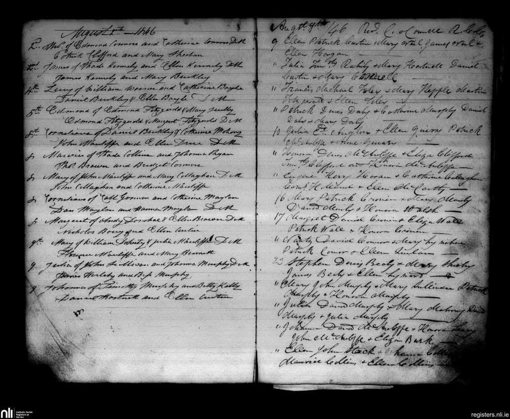 Newmarket; County of Cork; Diocese of Cloyne. Baptisms, Aug. 1846
