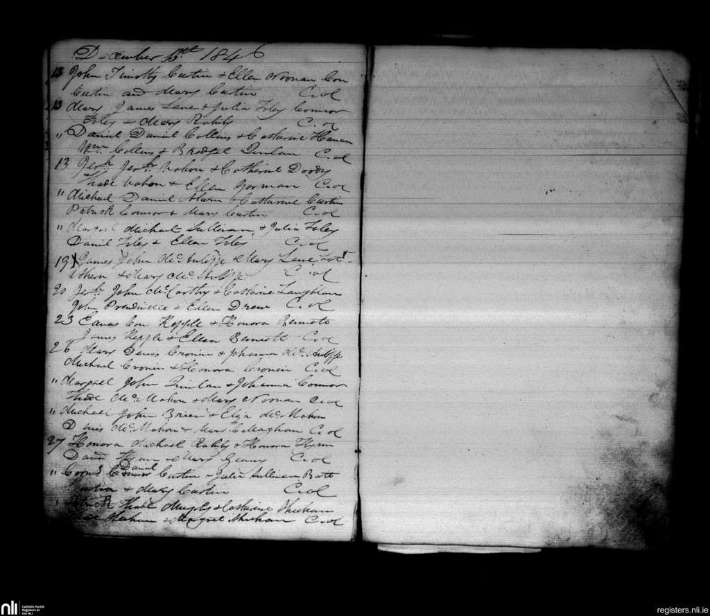 Newmarket; County of Cork; Diocese of Cloyne. Baptisms, Dec. 1846