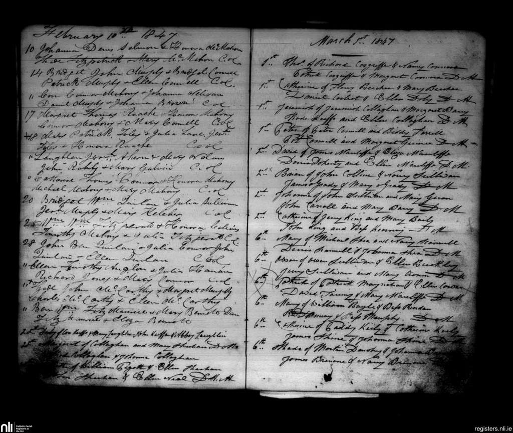 Newmarket; County of Cork; Diocese of Cloyne. Baptisms, Feb. 1847 to Mar. 1847