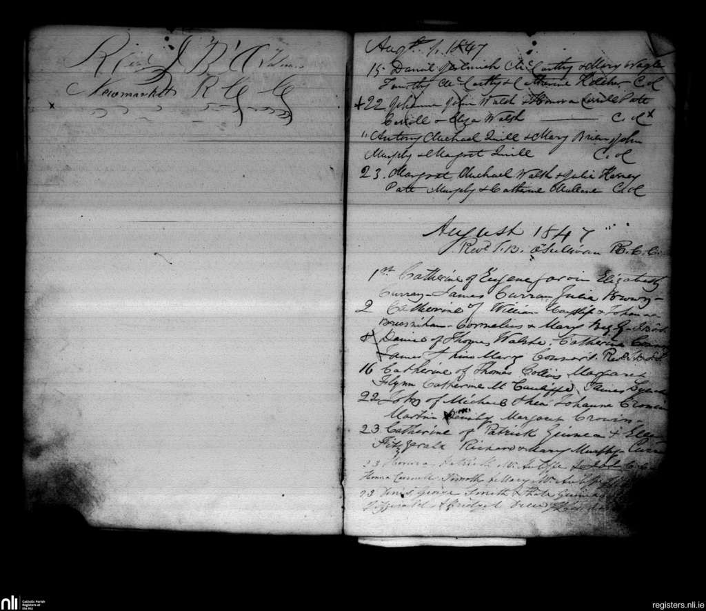 Newmarket; County of Cork; Diocese of Cloyne. Baptisms, Aug. 1847