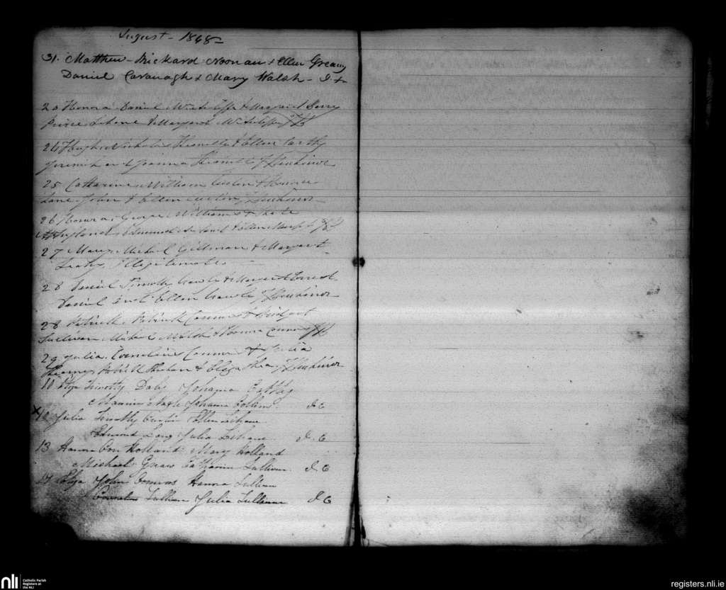 Newmarket; County of Cork; Diocese of Cloyne. Baptisms, Aug. 1848