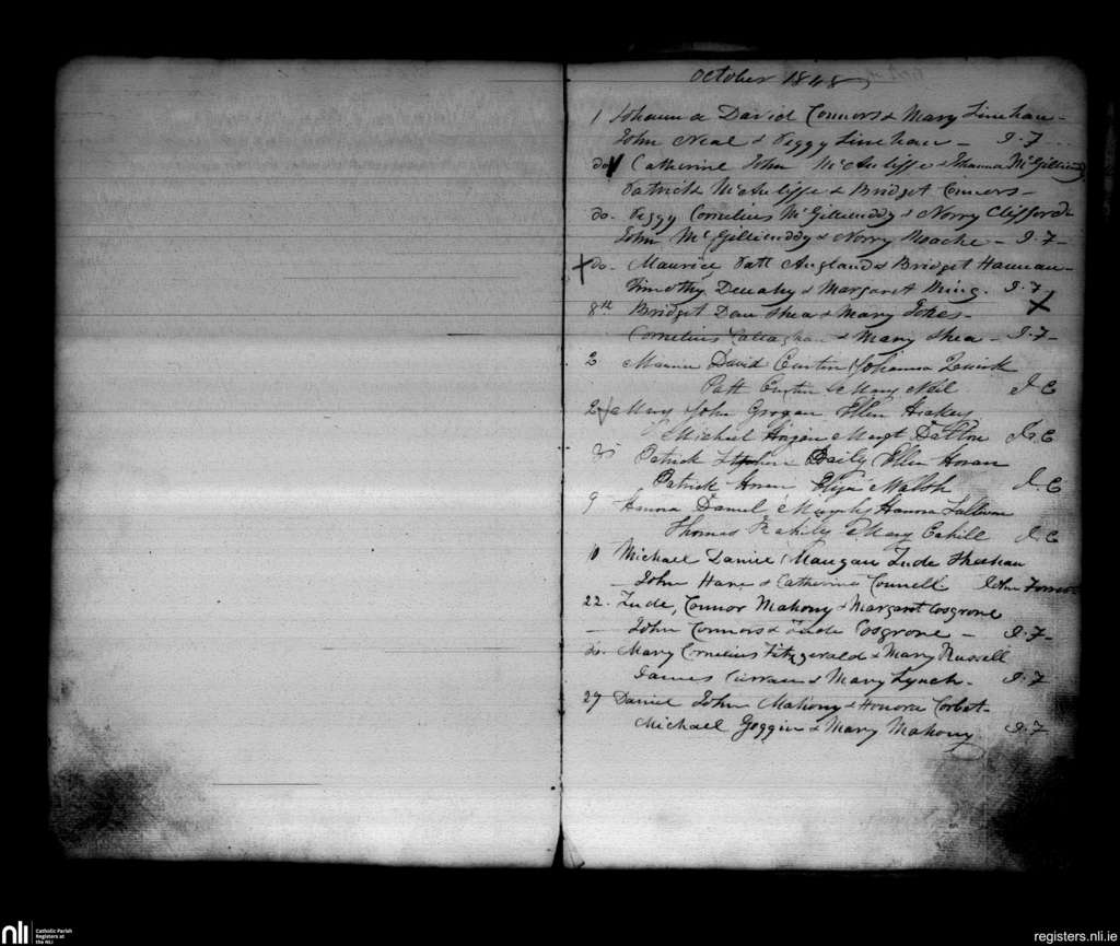 Newmarket; County of Cork; Diocese of Cloyne. Baptisms, Oct. 1848