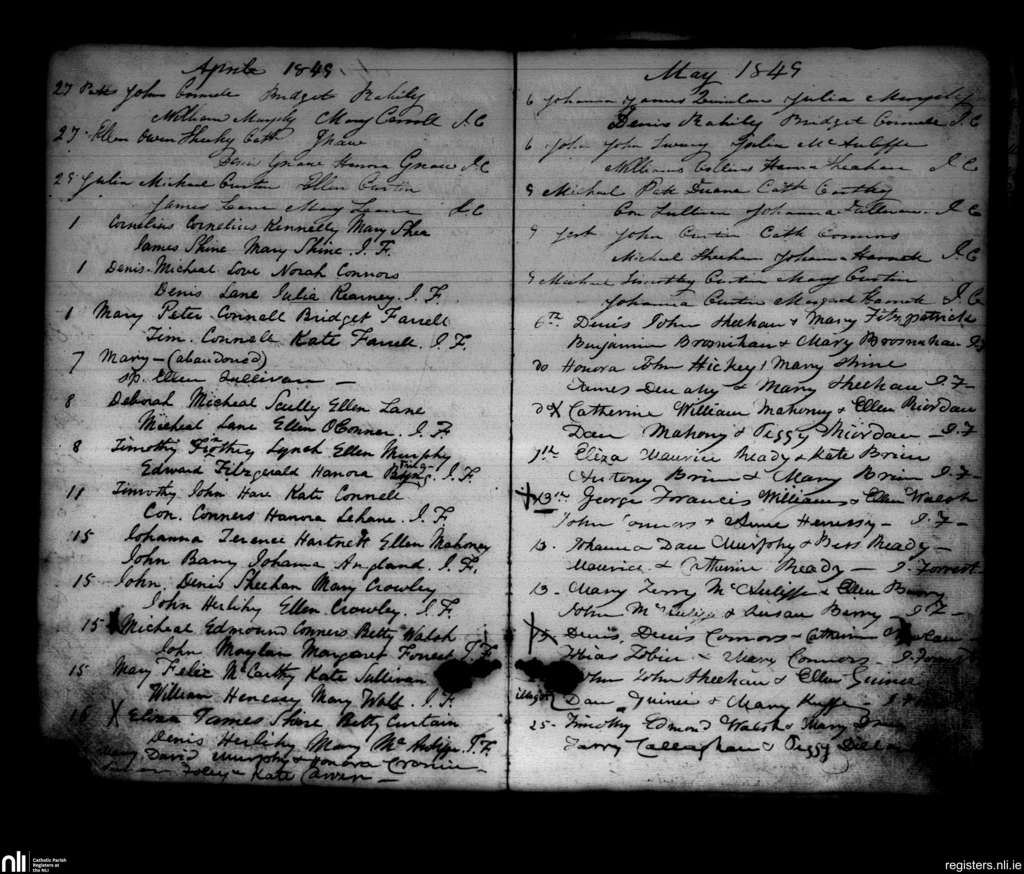 Newmarket; County of Cork; Diocese of Cloyne. Baptisms, Apr. 1849 to May 1849