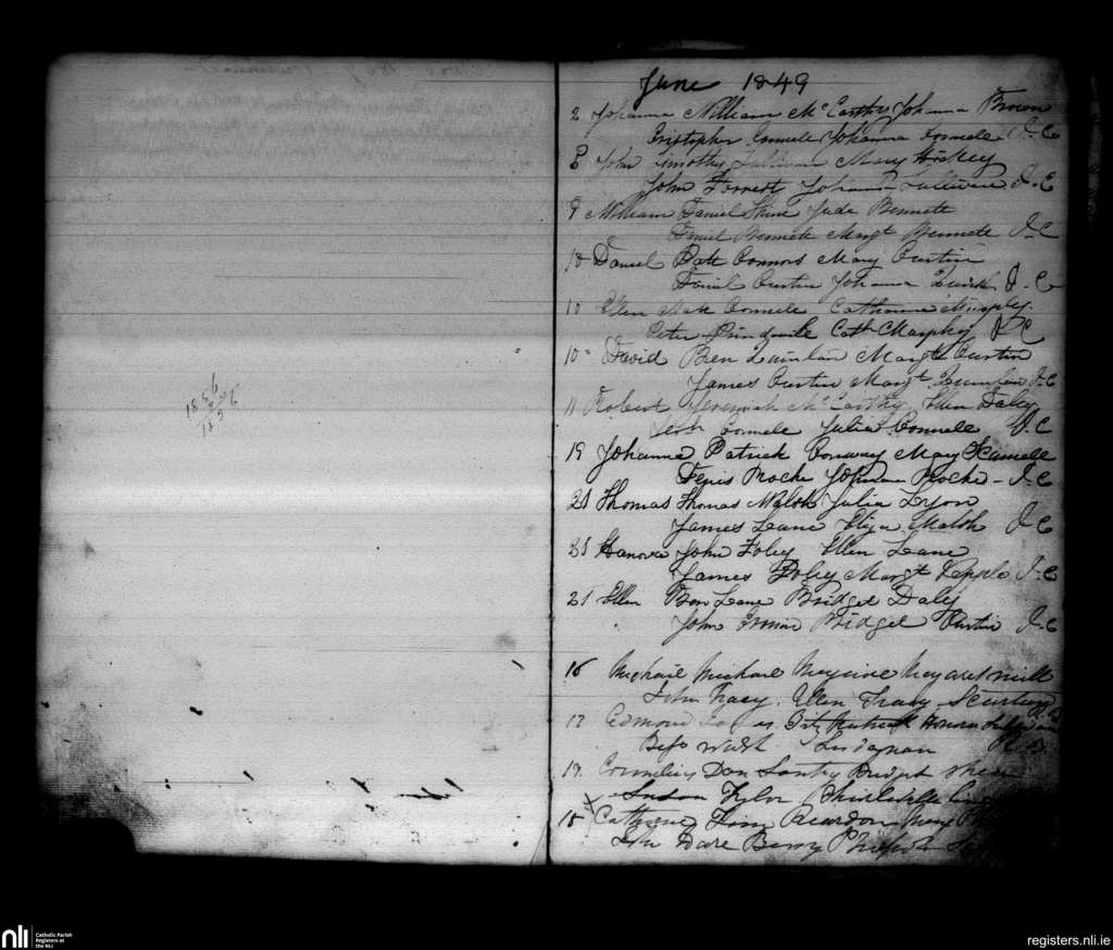 Newmarket; County of Cork; Diocese of Cloyne. Baptisms, June 1849