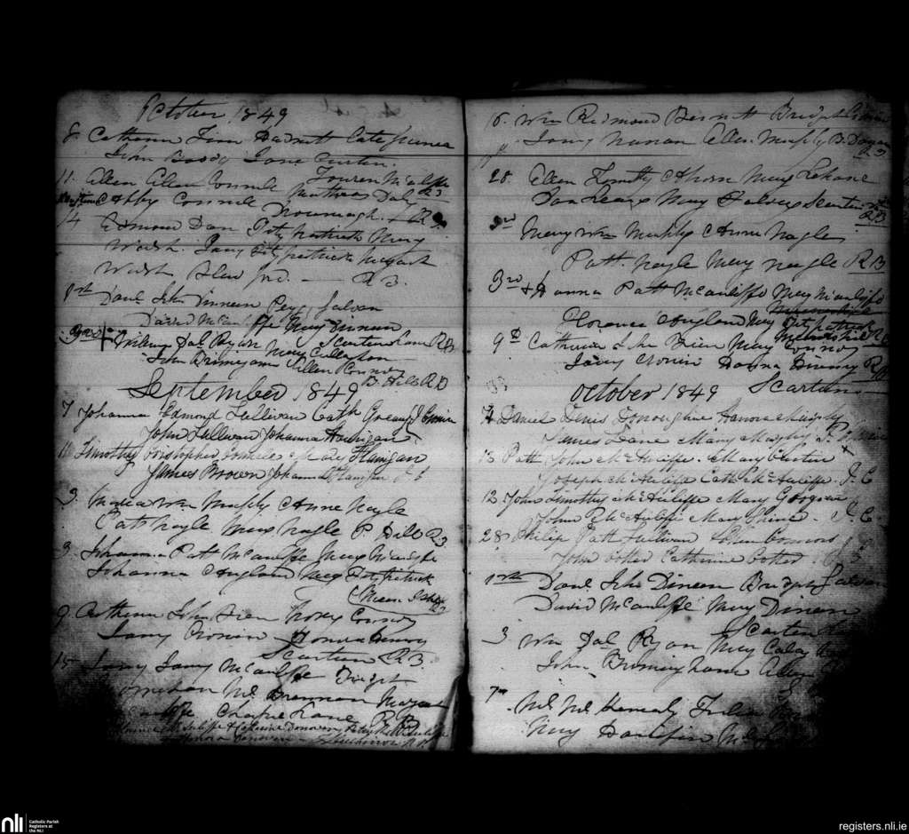 Newmarket; County of Cork; Diocese of Cloyne. Baptisms, Sep. 1849 to Oct. 1849