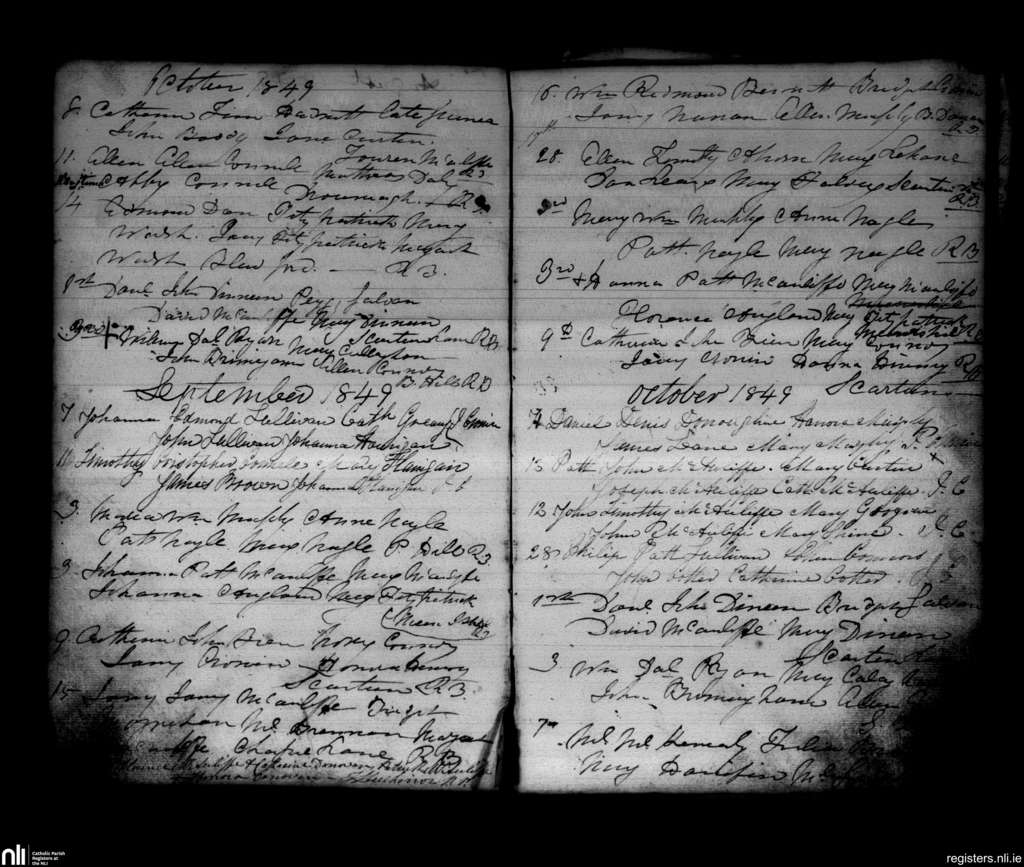 Newmarket; County of Cork; Diocese of Cloyne. Baptisms, Sep. 1849 to Oct. 1849
