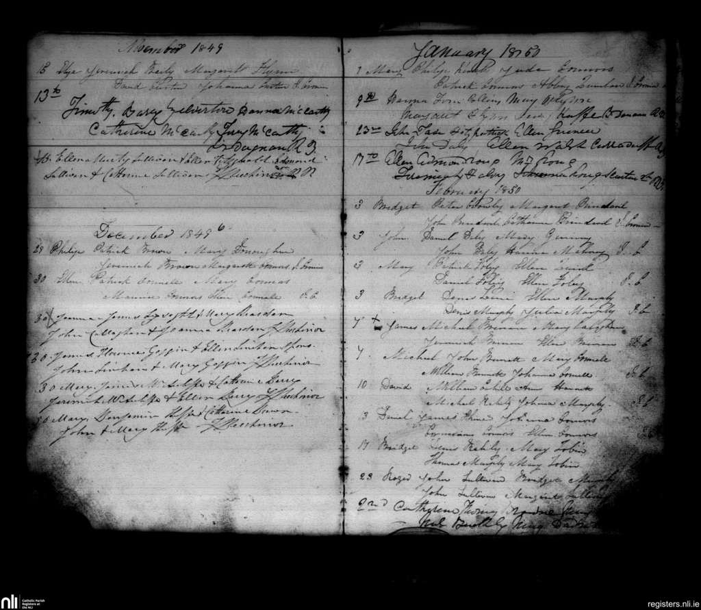 Newmarket; County of Cork; Diocese of Cloyne. Baptisms, Nov. 1849 to Feb. 1850
