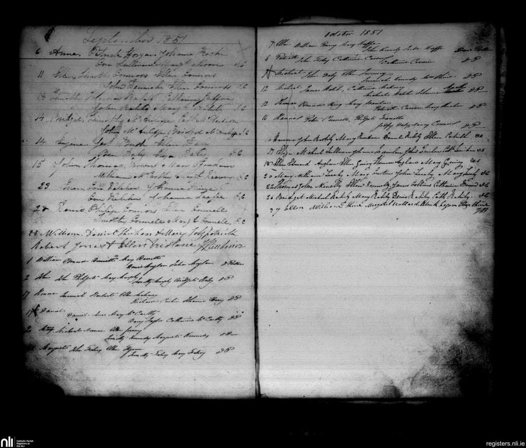Newmarket; County of Cork; Diocese of Cloyne. Baptisms, Sep. 1851 to Oct. 1851