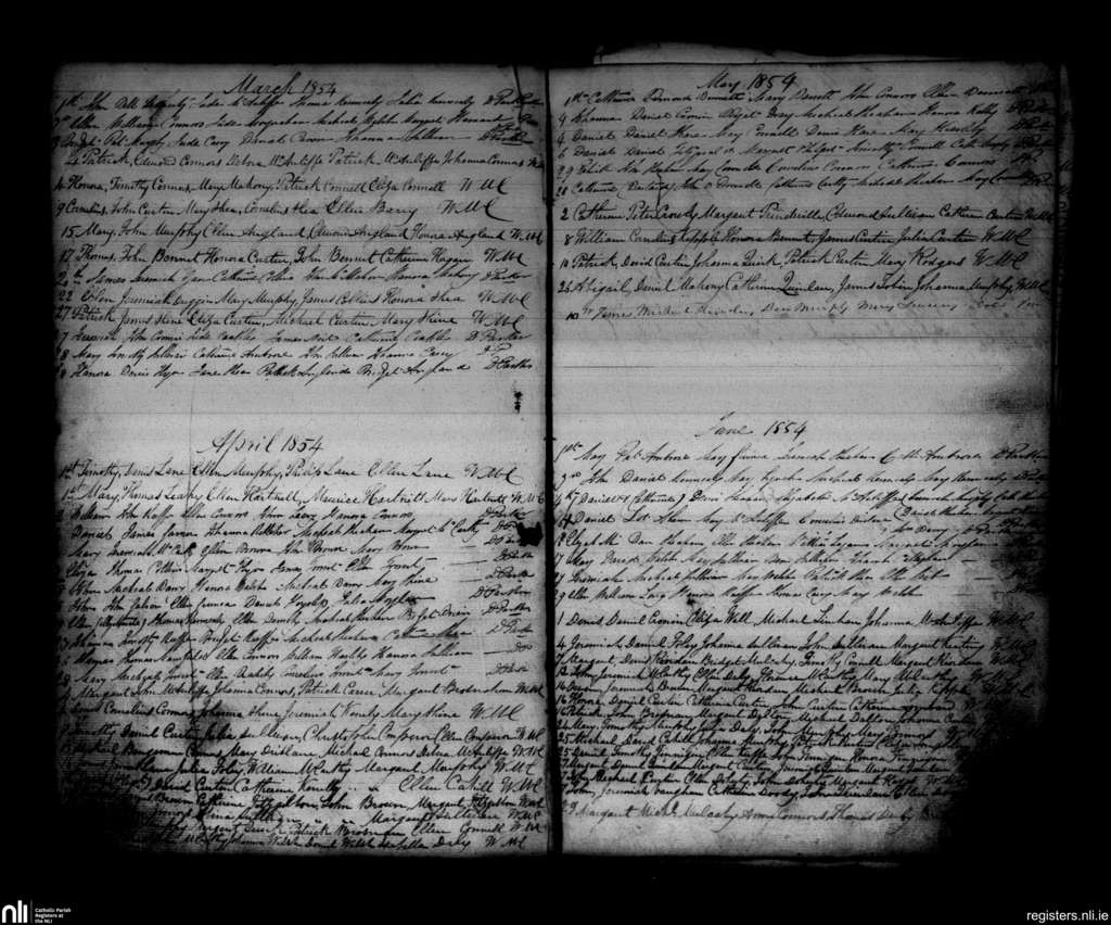 Newmarket; County of Cork; Diocese of Cloyne. Baptisms, Mar. 1854 to June 1854