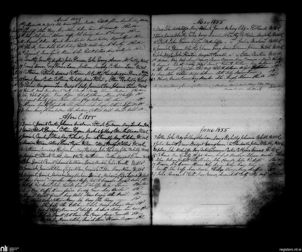 Newmarket; County of Cork; Diocese of Cloyne. Baptisms, Mar. 1855 to June 1855