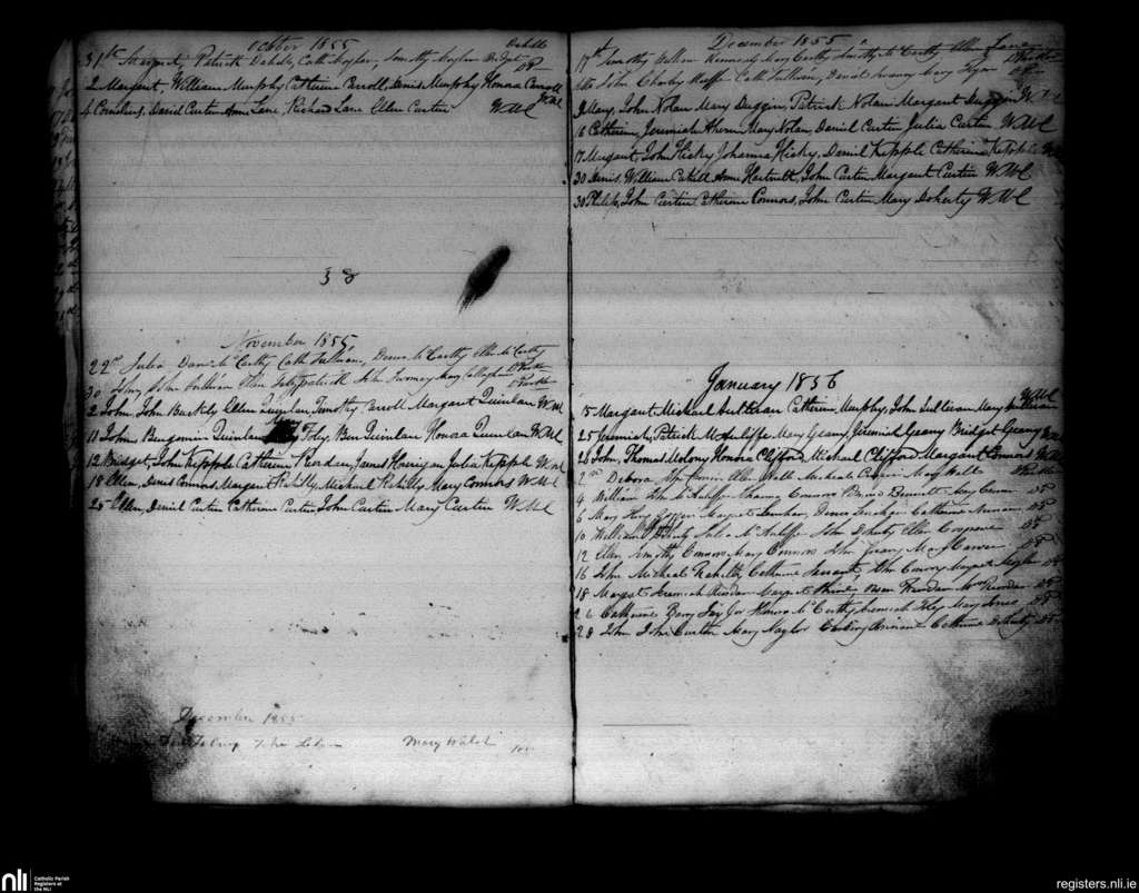 Newmarket; County of Cork; Diocese of Cloyne. Baptisms, Oct. 1855 to Jan. 1856