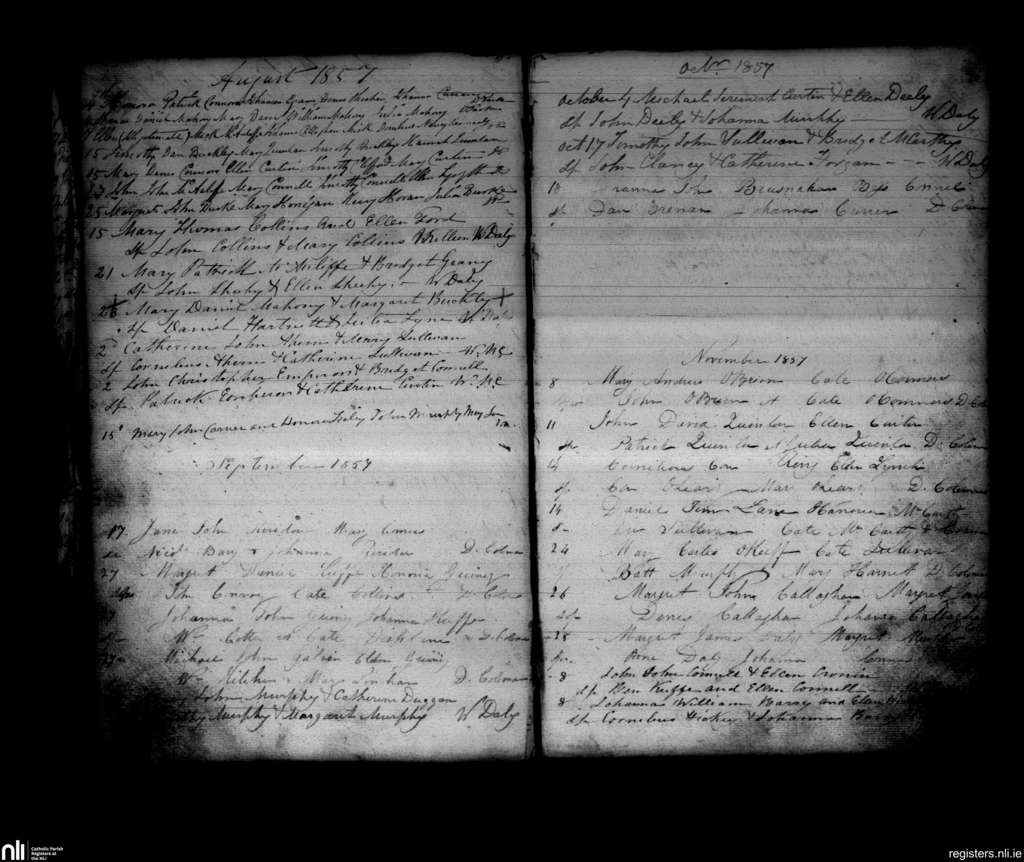 Newmarket; County of Cork; Diocese of Cloyne. Baptisms, Aug. 1857 to Nov. 1857