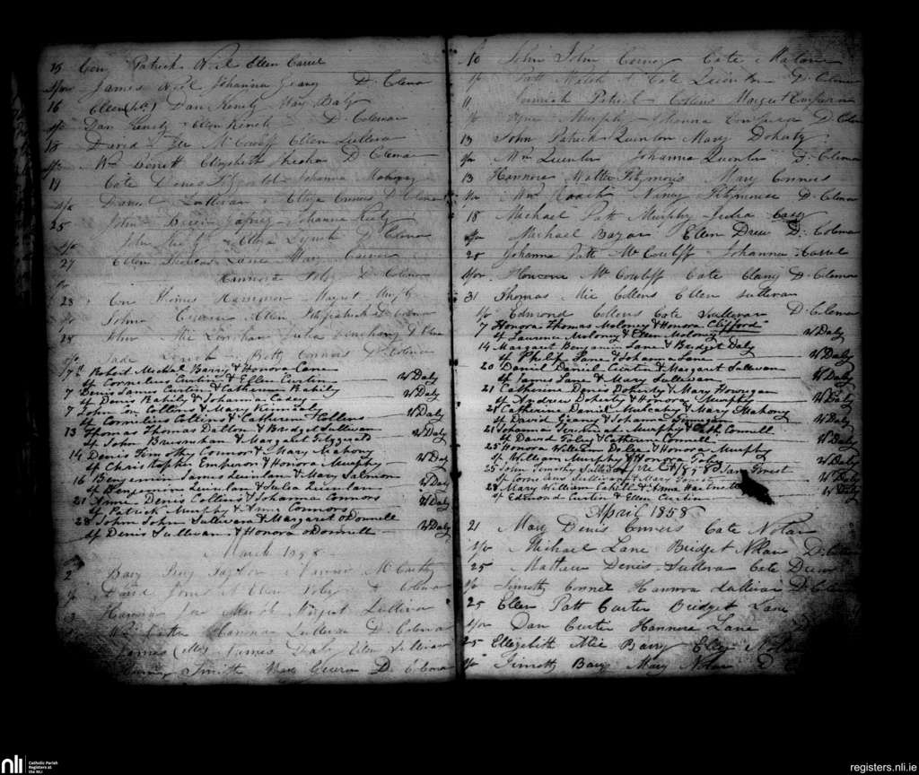 Newmarket; County of Cork; Diocese of Cloyne. Baptisms, Feb. 1858 to Apr. 1858