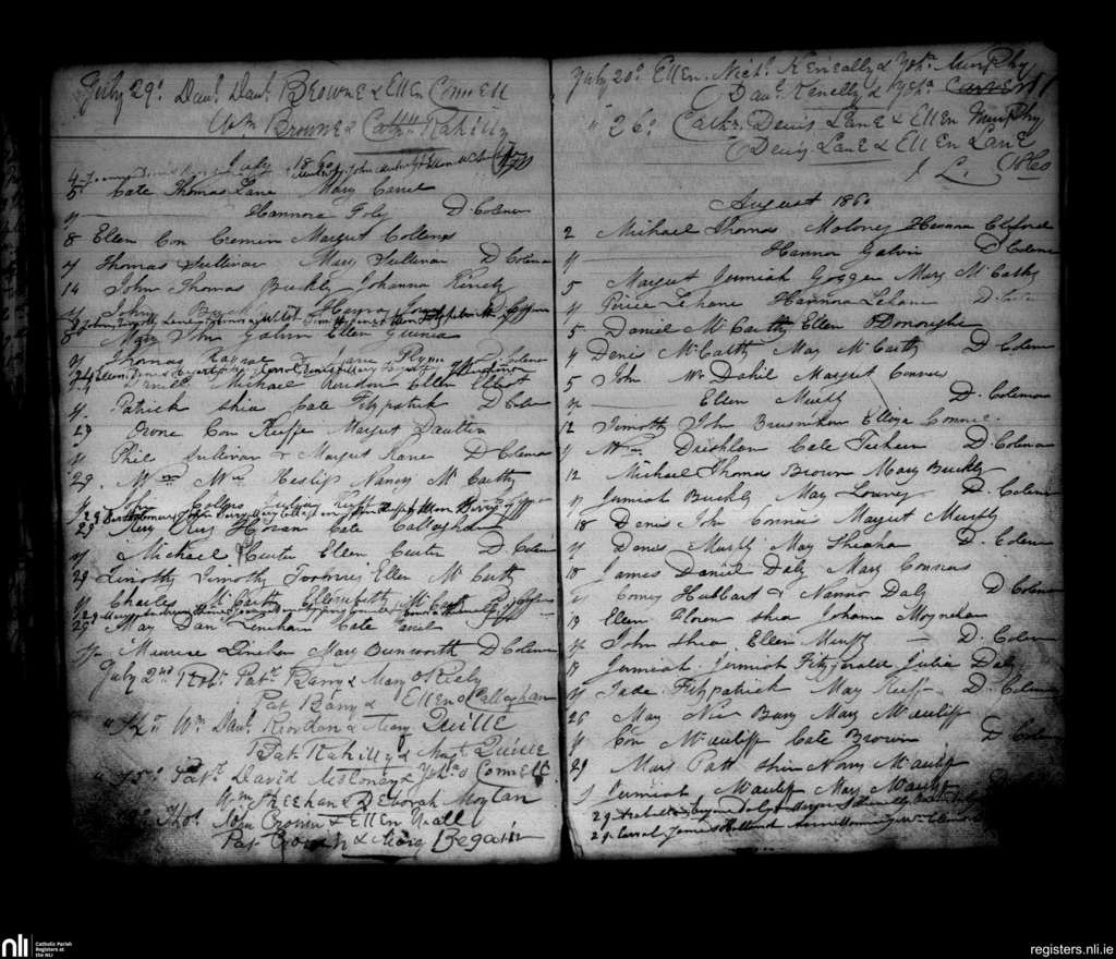 Newmarket; County of Cork; Diocese of Cloyne. Baptisms, July 1860 to Aug. 1860