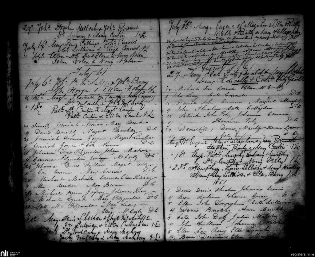Newmarket; County of Cork; Diocese of Cloyne. Baptisms, June 1861 to Aug. 1861