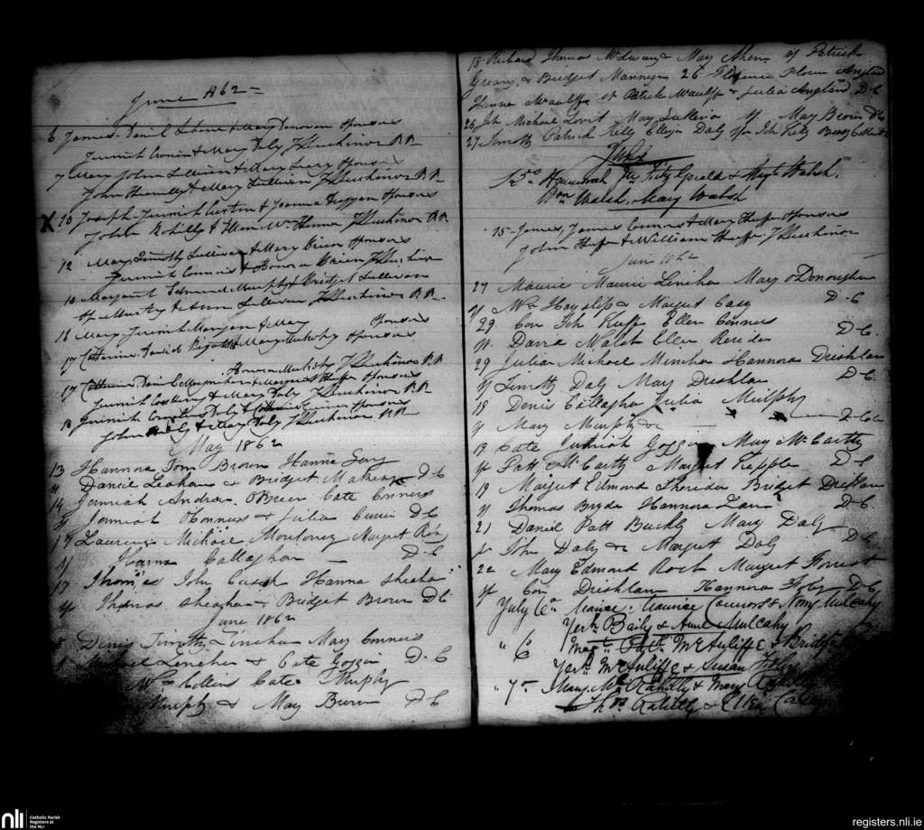 Newmarket; County of Cork; Diocese of Cloyne. Baptisms, June 1862 to July 1862