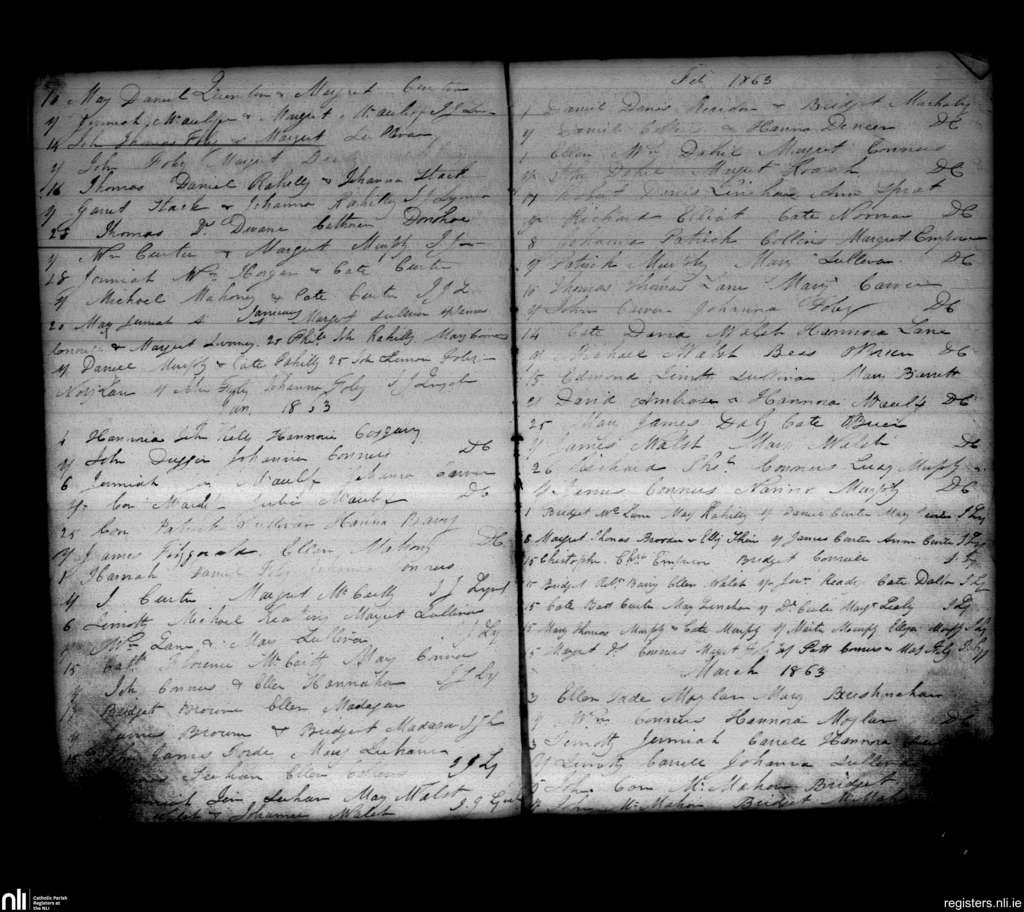 Newmarket; County of Cork; Diocese of Cloyne. Baptisms, Dec. 1862 to Mar. 1863