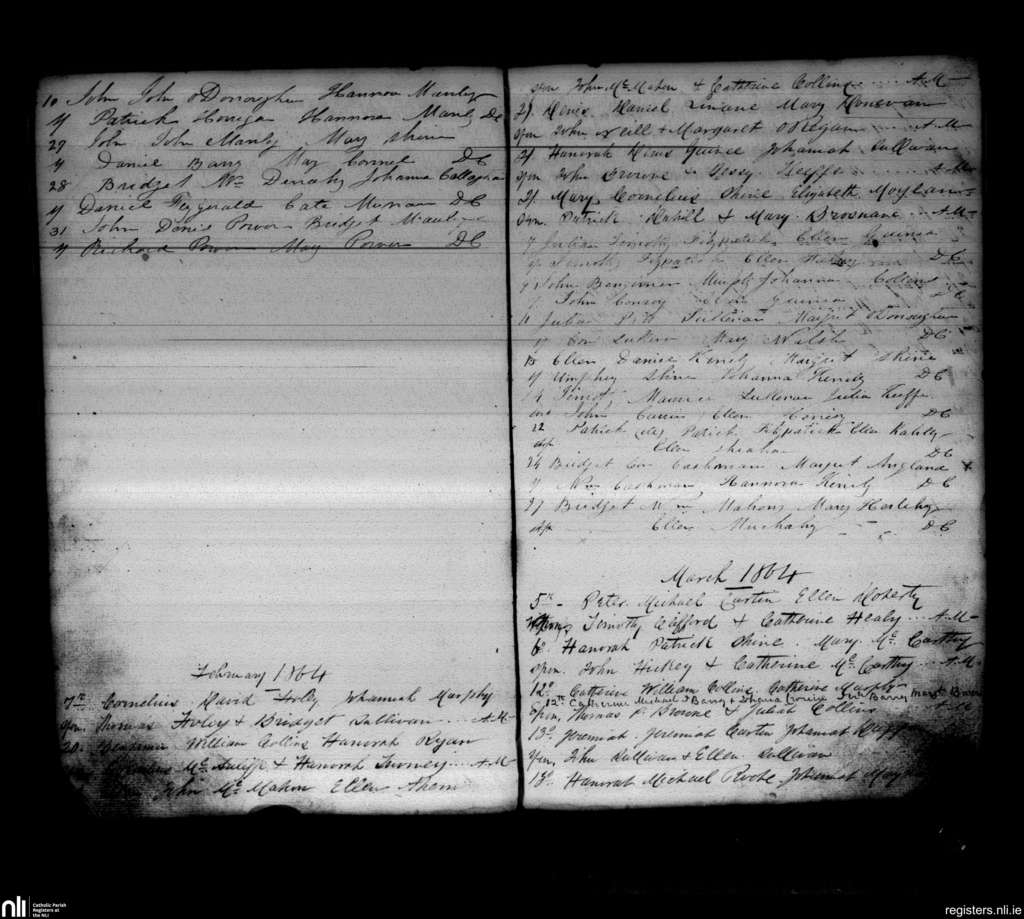 Newmarket; County of Cork; Diocese of Cloyne. Baptisms, Jan. 1864 to Mar. 1864